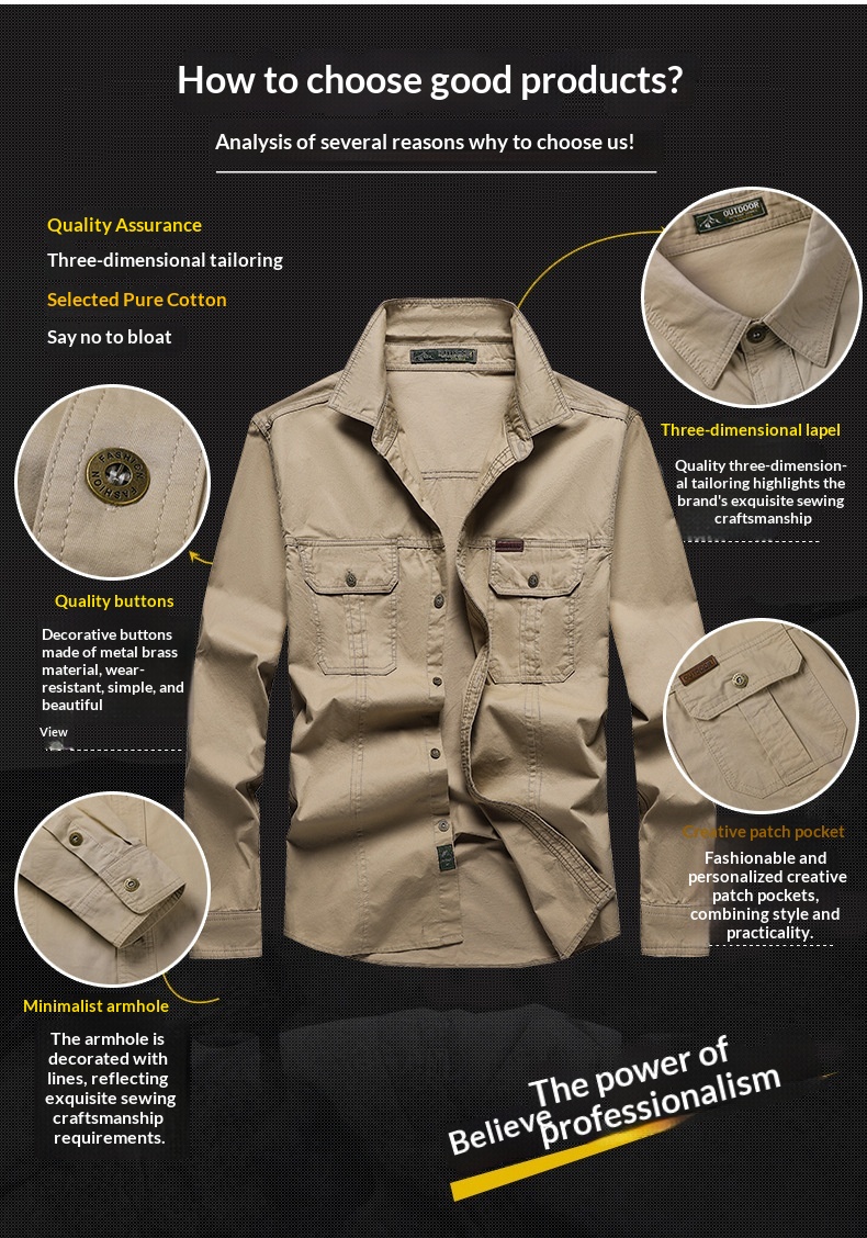 Men's Casual Loose-fit Long-sleeve Work Shirt