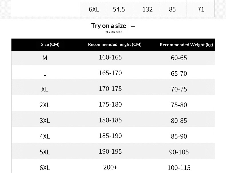 Sizes: M, L, XL, XXL, XXXL, XXXXL, 5XL, 6XL