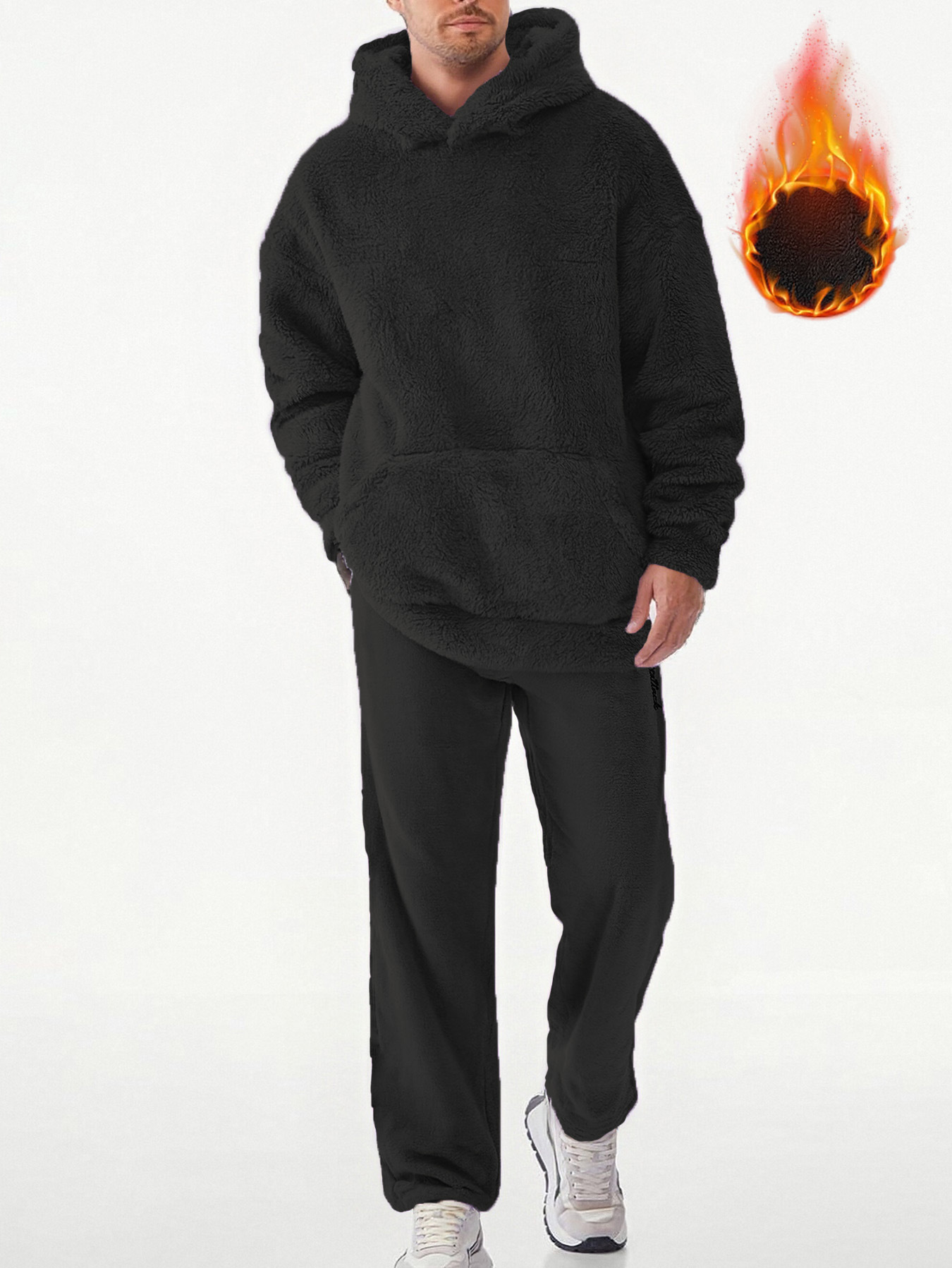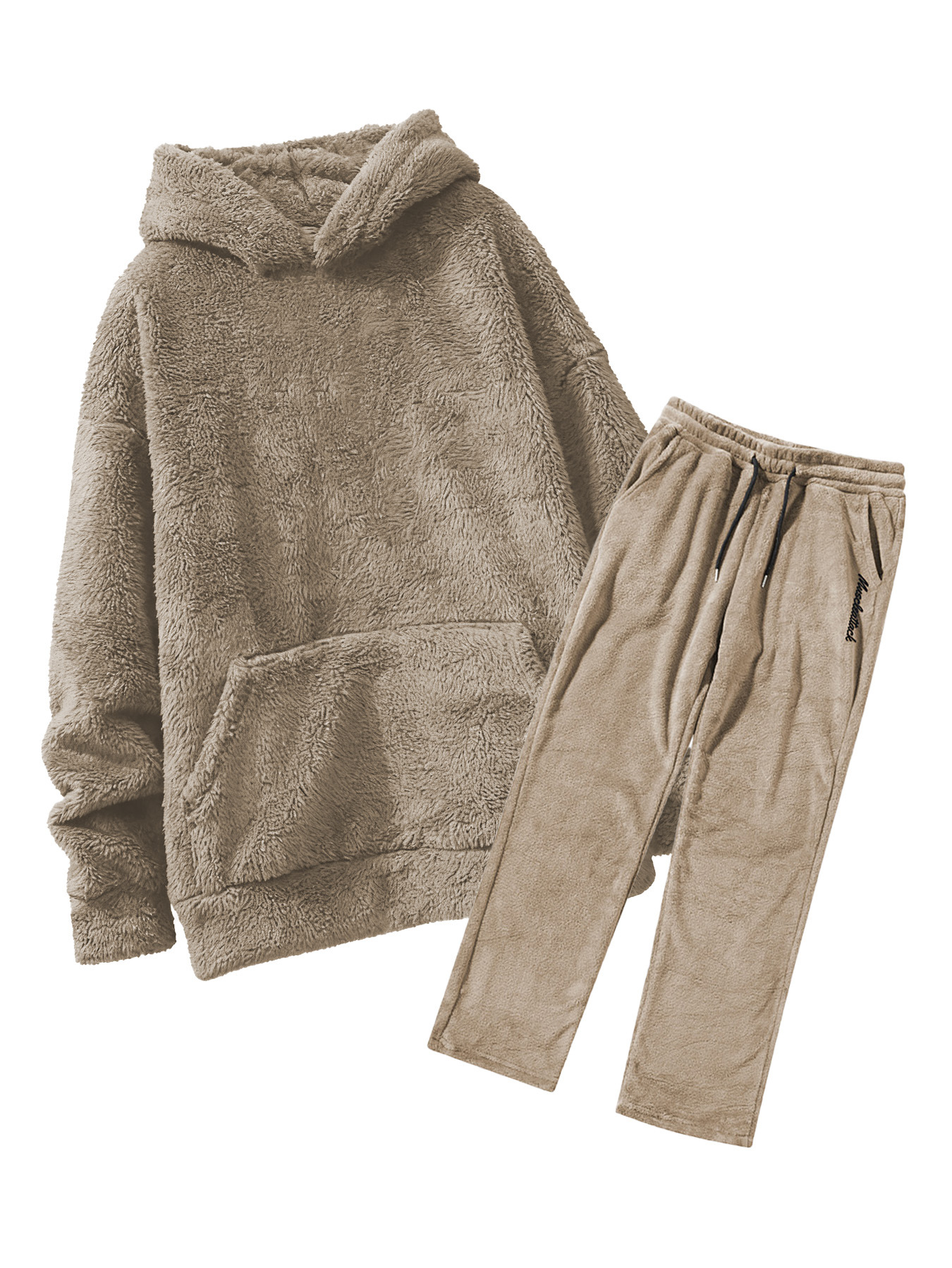 Men's Hooded Casual Loose-Fit Fashionable Personalized Coral Fleece Sweater Set