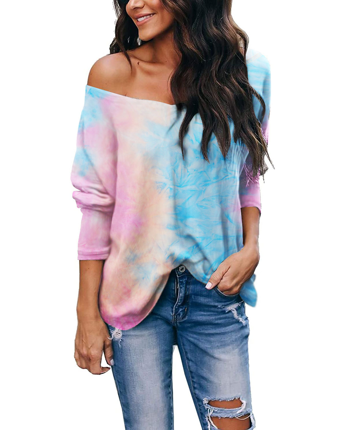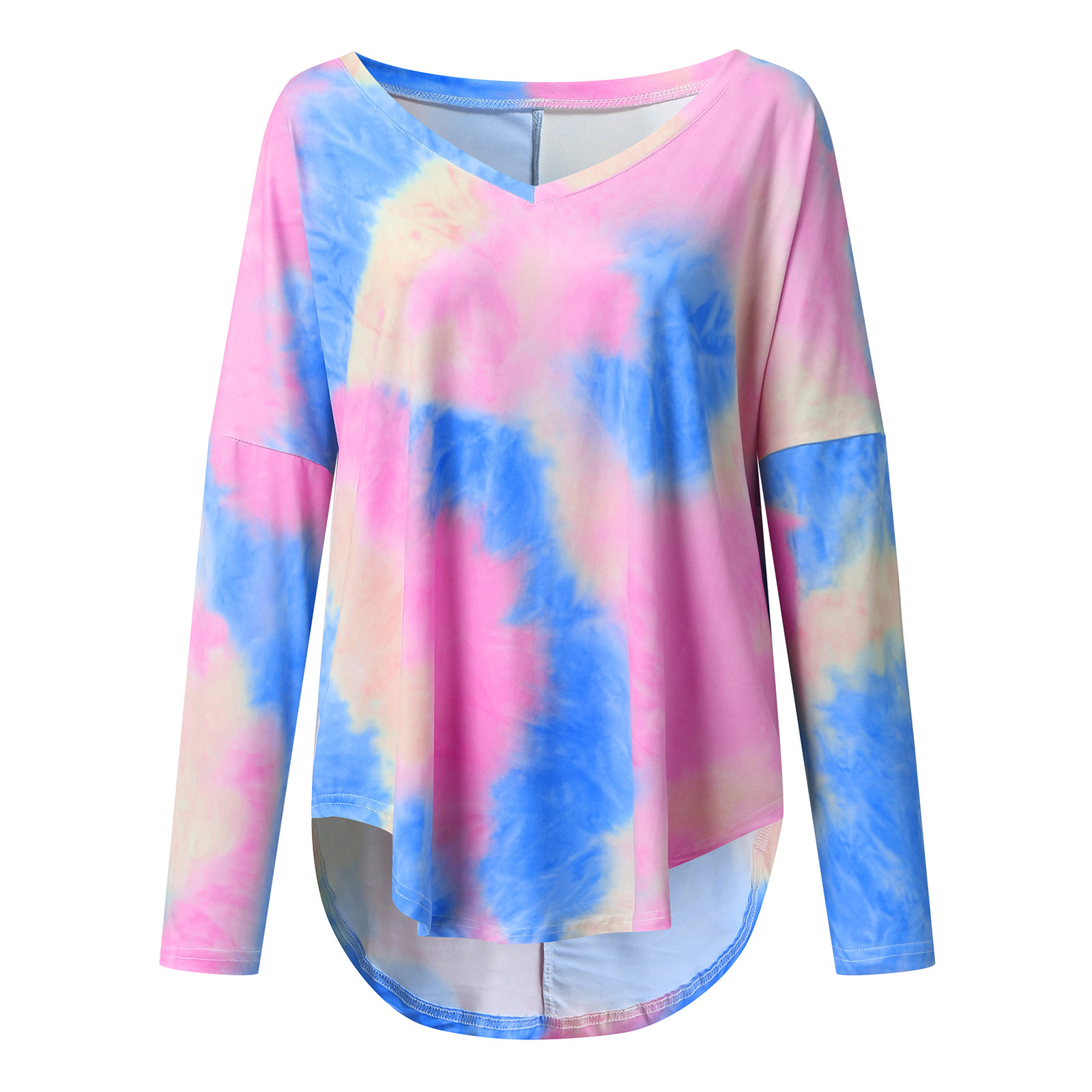 Women's Tie-Dye Long-Sleeve V-Neck Loose-Fit T-Shirt